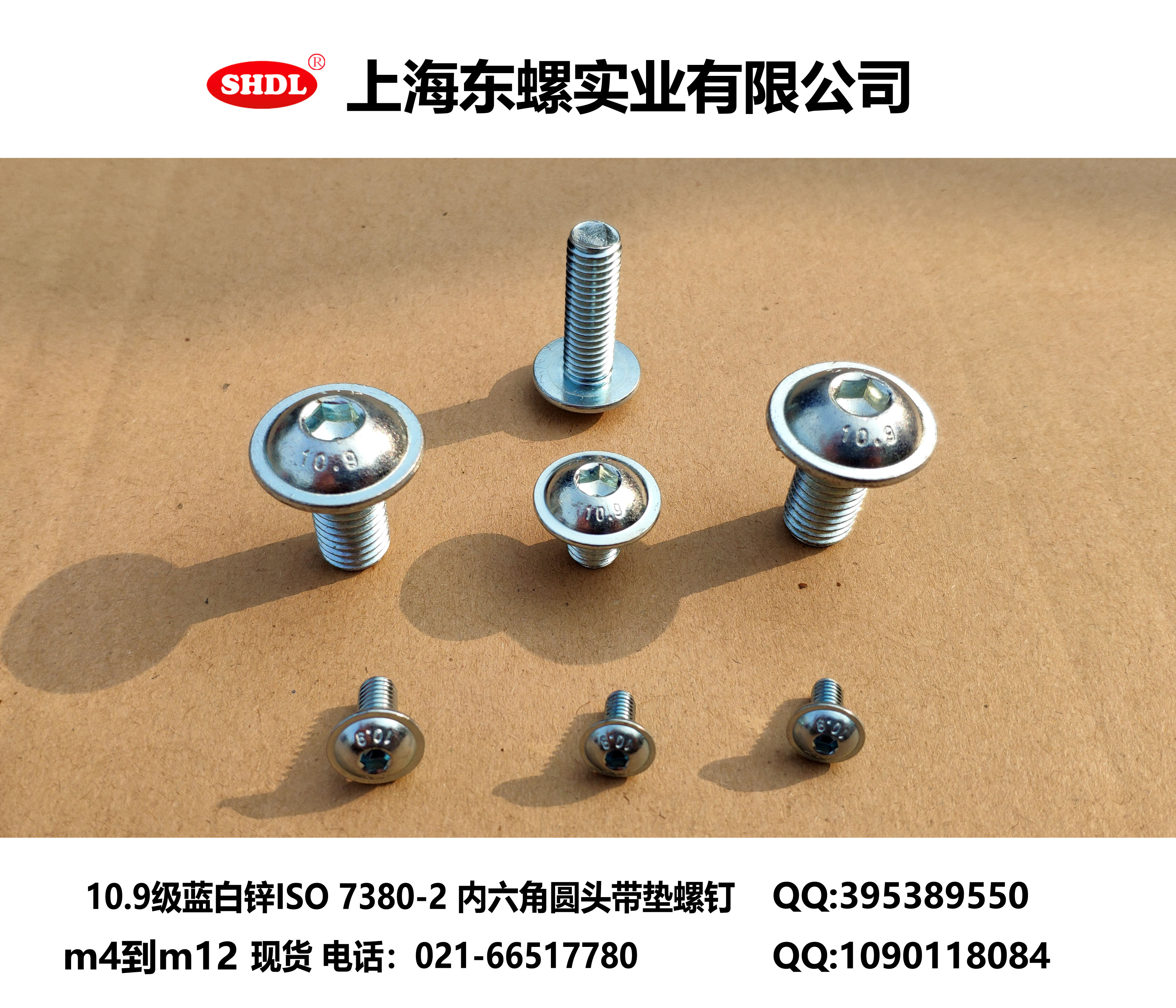 10.9級藍白鋅內六角圓頭帶墊螺釘 ISO 7380-2-2011現貨